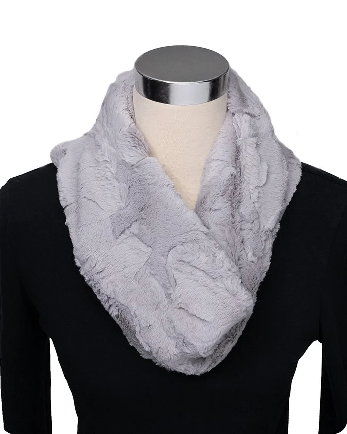 Wrap yourself in refined comfort with the Silver Hide Infinity Scarf. Crafted from ultra-soft Silver Hide plush, this scarf offers a smooth, velvety texture with a subtle sheen. Its seamless infinity design provides a full, cozy drape, making it a versatile accessory for both everyday wear and dressier winter looks.